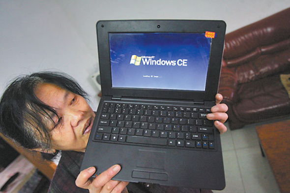 老兩口也不是很懂這個,直到晚上大兒子回家仔細檢查后才發(fā)現(xiàn),這所謂的超級上網(wǎng)本,只是一堆塑料簡易制品,跟小孩子的玩具沒兩樣。而且這臺電腦根本打不開,按了電源鈕后,屏幕上只出現(xiàn)“Windows CE”字樣,就無任何反應(yīng)了。