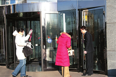 昨天上午,在索愛公司大樓前,一名安保人員守在門口,禁止他人進(jìn)入。在大廳內(nèi),30多名身穿黃色索愛公司銷售服的人,舉著“還我們權(quán)益”的條幅討薪。