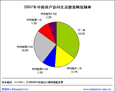 國(guó)家工業(yè)和信息化部公布的信息顯示,截至08年2月份,我國(guó)網(wǎng)民數(shù)達(dá)2.21億人,超過(guò)美國(guó)居全球首位。而截至2008年4月,國(guó)內(nèi)生活搜索覆蓋人群已經(jīng)超過(guò)1.03億,較去年同期增幅39%。在口碑網(wǎng)上完成的對(duì)網(wǎng)民調(diào)查顯示,約有59.2%的用戶每周至少訪問(wèn)一次生活搜索網(wǎng)站,查找生活服務(wù)商家的信息或發(fā)布相關(guān)生活服務(wù)需求,其中將近24.9%的用戶幾乎每天都會(huì)訪問(wèn)生活搜索網(wǎng)站,僅有不到4成的用戶沒(méi)有確定的訪問(wèn)習(xí)慣。報(bào)告認(rèn)為,正是基于用戶對(duì)于本地生活信息的需求促使生活搜索網(wǎng)站的出現(xiàn)。從目前訪問(wèn)次數(shù)看,生活搜索網(wǎng)站已成為眾多網(wǎng)民日常生活比較依賴的工具之一。