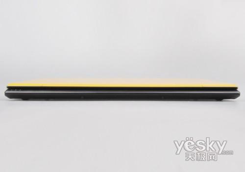 機(jī)身后側(cè)全部被電池占據(jù),所以也沒(méi)有設(shè)置任何接口。綜合看來(lái),同方將如此全面的功能接口濃縮在僅13.3英寸機(jī)身的兩個(gè)側(cè)面內(nèi)實(shí)屬不宜,而同時(shí)能夠保留光驅(qū)功能以及將厚度控制在30mm以內(nèi),更是值得稱道。