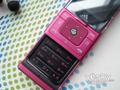 外觀上,F(xiàn)110配備了一塊2英寸的26萬色TFT彩屏,分辨率為240×320像素,屏幕上方是三星的LOGO,屏幕下方則是阿迪達(dá)斯的LOGO。其內(nèi)置界面則是三星一貫的12宮格界面,不過加入了多款運(yùn)動(dòng)墻紙,非常符合其運(yùn)動(dòng)機(jī)型的特質(zhì)。三星F110采用三星擅長的滑蓋設(shè)計(jì),正面采用鏡面設(shè)計(jì),并且加入特殊涂層,無論在視覺或手感上都是非常的動(dòng)感,非常符合運(yùn)動(dòng)的特質(zhì)。背面的防滑設(shè)計(jì)相當(dāng)?shù)某霾剩浅S欣谠谶\(yùn)動(dòng)中使用。另外整機(jī)101.5×45×14.5mm的三圍加上92克左右的重量也非常便于攜帶。
