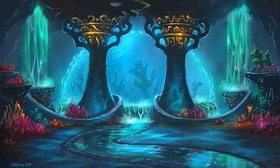 泰坦們將這片原始的空間依照四種元素的特性而劃分為四個(gè)屬性截然不同的元素異界。多年來(lái),地、水、火、風(fēng)這四種元素陷入了永無(wú)止境的爭(zhēng)斗,在他們國(guó)度的邊界不斷展開大規(guī)模的戰(zhàn)斗。在元素位面的其中一個(gè)異界之中,有一片廣闊的大海名為無(wú)盡之淵,也就是水元素所在的領(lǐng)域。傳說(shuō)這個(gè)水之國(guó)度是由一個(gè)無(wú)比強(qiáng)大的生物“獵潮者”奈普?qǐng)D隆所統(tǒng)治,他擁有一柄強(qiáng)大無(wú)比的武器,據(jù)說(shuō)擁有這個(gè)神器的人即擁有掌控艾澤拉斯所有海域的權(quán)力。時(shí)至今日,這個(gè)神器仍安穩(wěn)地存放在水元素的異界之中…但不久之后一切即將改觀。