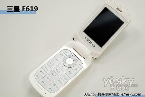 翻開三星F619的翻蓋,該機(jī)并沒有對(duì)手機(jī)內(nèi)側(cè)進(jìn)行太多的修飾,一樣是白色的主旋律,2.4英寸TFT屏幕位于上翻蓋,聽筒上加蓋了金屬防塵網(wǎng),雖然聽筒孔徑有限,但通話聲音洪亮。一顆天翼的Logo標(biāo)志著三星F619的定制地位。