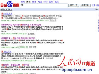 12月13日,中央電視臺《朝聞天下》欄目播出了百度少兒搜索存在黃色內(nèi)容的消息。報(bào)道稱,在百度測試了三年的少兒搜索引擎中,輸入"聊天"、"激情"等詞語后,搜索結(jié)果竟然是大量黃色網(wǎng)站的鏈接。隨后,人民網(wǎng)記者試圖打開這個(gè)網(wǎng)頁,但是已經(jīng)被百度公司屏蔽了,只有一些少兒網(wǎng)站的地址。不過,在百度普通的搜索頁面中,敏感信息仍然沒有被有效屏蔽,黃色淫穢的結(jié)果很輕松就能被搜索出來。