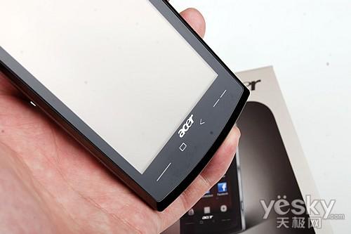 外觀上,ACER neotouch采用了傳統(tǒng)的直板造型設(shè)計,配備了一塊3.8英寸WVGA的電阻式觸摸屏幕,分辨率達(dá)到了480x800像素,顯示效果清晰細(xì)膩。neotouch擁有117.5x63.5x12.85 毫米的三圍體積,重量131.5克,整機(jī)設(shè)計簡約時尚,握持手感非常不錯。
