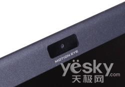 前面我們已經(jīng)對(duì)它頂蓋材料做過介紹,這種碳纖維選材結(jié)合LED背光能夠讓屏幕做得非常纖薄,側(cè)面厚度僅有5毫米。屏幕邊框同樣也采用這種合成材料,邊框設(shè)計(jì)很窄,在上方增加了六個(gè)膠皮墊腳,起保護(hù)屏幕的作用。在屏幕上方設(shè)計(jì)了一顆攝像頭,其有效像素為640×480,可以滿足一般網(wǎng)絡(luò)視頻需求。