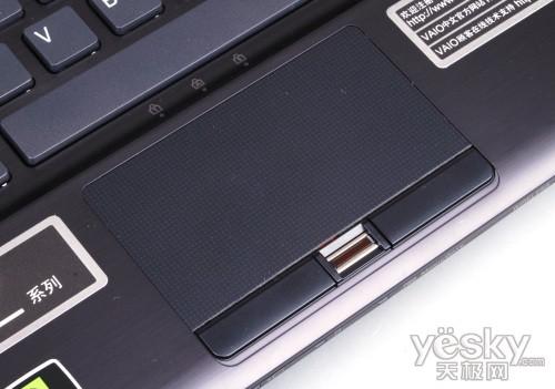 觸摸板區(qū)域設(shè)計(jì)寬大,表面附了一層采用了磨砂處理的塑料材質(zhì),同時(shí)為了增加手感表面還加了一些微小凸點(diǎn)的膜。左右按鍵被設(shè)計(jì)成狹長的外形,用手按下去的觸感非常好,彈性好并且省力。雖然還是不如一些商務(wù)本的指點(diǎn)桿操控,不過對(duì)于一些初級(jí)用戶來說,還是觸摸板更容易使用。另外,左右按鍵中加入了指紋識(shí)別器,對(duì)于一些比較注重安全的商務(wù)用戶來說還是非常有必要的。