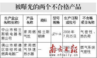 據(jù)該局抽查家用燃氣具產(chǎn)品的最新結(jié)果顯示:家用燃氣灶產(chǎn)品在此次抽查中合格率僅為70.3%,近三成產(chǎn)品不合格。不過,家用燃氣具整體合格率較好,合格率為78.57%。其中,家用燃氣快速熱水器產(chǎn)品批次合格率為90.63%,2007年該類產(chǎn)品批次合格率70.54%;兩用爐產(chǎn)品批次合格率為100%。