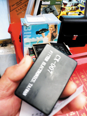 昨天上午,在某洋貨市場(chǎng)內(nèi)六區(qū)一家名為大帆世界精品屋門前的攤位上,一則廣告引起不少客人注目。只見廣告上赫然標(biāo)明銷售“手機(jī)竊聽器”。得知有人詢問竊聽器,這名南方口音、40多歲的攤主顯得很謹(jǐn)慎,不停打量著記者。經(jīng)過幾番交談,攤主看不出什么破綻,才小聲說道:“這東西不是隨便賣的,我就給你講講吧。只要你買任何一張手機(jī)卡插到里面,再將裝置放在你需要竊聽的地方。使用時(shí),你只需要撥打裝置里的手機(jī)號(hào)碼,就可以聽到那個(gè)地方的聲音了。因?yàn)槟闶褂玫氖鞘謾C(jī)竊聽,所以無論多遠(yuǎn)都可以,只要有信號(hào)就行。”