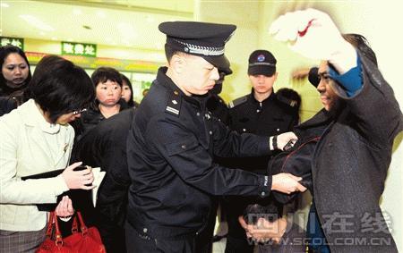 昨天(10月21日)清晨6點(diǎn),華西醫(yī)院門(mén)診一樓掛號(hào)窗口前,四名小伙子密切注視著人群中來(lái)回走動(dòng)的“號(hào)串串”,經(jīng)過(guò)一個(gè)小時(shí)的暗訪取證之后,清晨7點(diǎn),四名小伙子全部現(xiàn)身,聯(lián)合武侯公安分局玉林派出所的13名警察,揪出了混在人群中的7名“號(hào)串串”,原來(lái)他們是便衣警察,已經(jīng)在華西醫(yī)院門(mén)診部潛伏多日。據(jù)了解,這是華西醫(yī)院、武侯公安聯(lián)合進(jìn)行的整治“號(hào)串串”行動(dòng)。