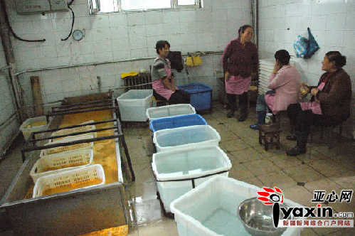 采訪中,記者從4家規(guī)模較大的餐具消毒公司得知,按照正規(guī)程序:第一步,工人從餐廳收回已使用過的餐具后,將碗、筷等分類后,除雜清洗一遍;第二步,將餐具放入特制的消毒劑中浸泡5-15分鐘,進(jìn)行物理消毒。第三步,用溫水將餐具再精洗一遍。第四步,經(jīng)380℃遠(yuǎn)紅外消毒烘干機(jī)高壓噴淋后烘干、消毒。最后;為避免二次污染餐具,餐具直接運(yùn)進(jìn)無菌包裝室,用包裝袋包裝成套后,用紅外熱收縮膜機(jī)密封包裝。