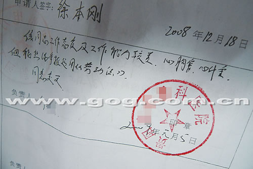 更大的意外還在后面,昨日(1月5日),當(dāng)徐本剛來(lái)到醫(yī)院,何某在為他蓋章的同時(shí),簽下了以下意見(jiàn):該同志工作態(tài)度及工作能力較差,心胸窄,心計(jì)重,但能熟練掌握運(yùn)用《勞動(dòng)法》。