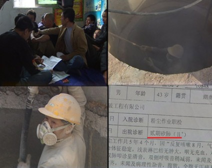 湖南省桑植縣農(nóng)民工鐘家泉:“就聽到耒陽,那個事情以后大家就要我自己去拍個片,因為我們?nèi)サ铰毞泪t(yī)院檢查之后,職防醫(yī)院把我們拒之門外,不給我們檢查,他說要勞動關(guān)系,我們沒辦法就退回來了,到回來以后我就掏了九十塊錢做了個檢查,檢查之后發(fā)現(xiàn)有問題就心里感到恐懼,怕死說白了。”