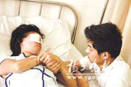 在醫(yī)院眼科搶救病房里,記者昨天下午見到雙眼蒙著紗布、躺在病床上的小雨,她雙手拉住坐在一旁的丈夫不愿松開。據(jù)小雨的丈夫梁偉介紹,他與妻子是在常州打工時認識的,兩人于2007年年底結婚,在結婚前,妻子就知道他有一個患精神分裂癥的弟弟。
