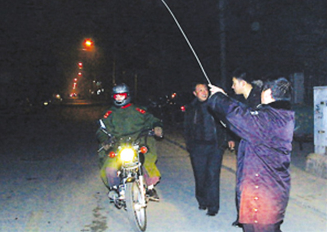 民警告訴記者,這根纜線已經(jīng)放倒幾位行人,其中受傷嚴(yán)重的潘女士脖子被“勒”了,剛?cè)メt(yī)院。記者發(fā)現(xiàn),每當(dāng)有電動(dòng)車或摩托車經(jīng)過(guò)這里時(shí),民警都會(huì)將這根纜線舉起來(lái),讓大家鉆行。民警表示,他們已經(jīng)通知相關(guān)部門前來(lái)查看到底是哪家的通訊電纜。
