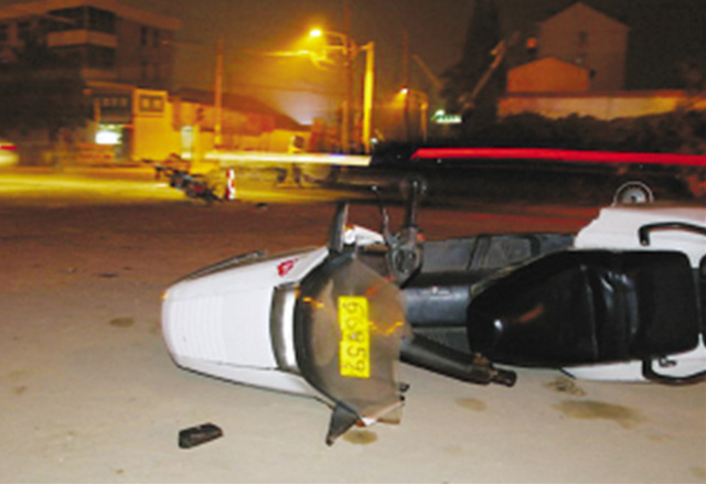 記者當(dāng)晚趕到現(xiàn)場(chǎng)時(shí),潘女士已去醫(yī)院就診,一名腿部受傷的男子正坐在路邊休息。只見(jiàn)地上躺著一輛電動(dòng)車和一輛摩托車,電動(dòng)車旁邊已被接警前來(lái)的派出所民警放置了一個(gè)警示標(biāo)志,民警同時(shí)還將警燈打開(kāi),提醒過(guò)往的電動(dòng)車和摩托車減速行駛。