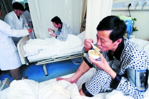 孫萍表示,病人的恢復(fù)進(jìn)程較快。6日,為了促進(jìn)消化,他們的食物以“湯水”等流質(zhì)為主;7日午飯時(shí),醫(yī)生就開(kāi)始為部分病人喂食湯面等半流質(zhì)食物。為了增加營(yíng)養(yǎng),加快身體恢復(fù),醫(yī)生對(duì)他們實(shí)行“一日七餐制”。