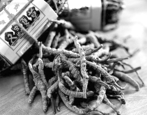 冬令服食冬蟲夏草是一件時髦事兒,F(xiàn)在的市場價是48萬元1公斤,價錢勝黃金。想當(dāng)初,上世紀80年代,國家的收購價是1公斤200-300元,那時醫(yī)院藥房是用大鐵盒裝此藥的。
