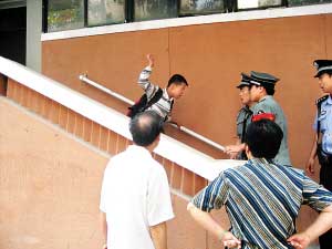 “和叔叔走,叔叔帶你回家!泵窬托囊(guī)勸小濤,但是小濤根本不聽,“不,我就不回家,我的事情你們不用管,你們真愛管閑事!”民警和兩名保安連拉帶拽,費(fèi)了很大的勁將小濤拖到樓里。在樓梯上,小濤仍不停地對(duì)民警又打又踹,折騰了好半天,民警的胳膊也被他抓出了血道。