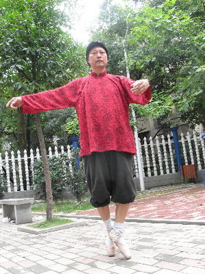 小跳、立足尖、旋轉(zhuǎn)……伴著《天鵝湖》的歡快音樂,劉老在記者面前亮起絕活。雖說是年過花甲的老漢,但他標(biāo)準(zhǔn)的舞姿和柔韌的肢體,卻一點不遜專業(yè)女演員。他的打扮也給人強(qiáng)烈的視覺反差:雖說跳的是“小天鵝”,他卻沒穿“燈籠袖”和貼身短裙,而是套上了一件老太太穿的粗布麻衫,頗有喜劇效果。