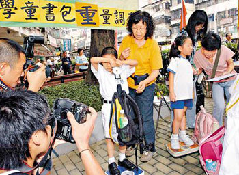香港學(xué)童書(shū)包超重嚴(yán)重,雖然醫(yī)學(xué)界建議書(shū)包重量不超過(guò)體重10%,但早前民建聯(lián) 一項(xiàng)調(diào)查顯示,香港學(xué)童書(shū)包重量平均達(dá)3.9公斤,最重更達(dá)7公斤,其中有一年級(jí)學(xué)童書(shū)包超重最為嚴(yán)重,平均比標(biāo)準(zhǔn)重量高出近49%。