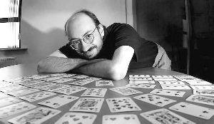 普里德摩爾記憶撲克牌也使用同樣的記憶技巧,任何兩張紙牌他都會用一個相應(yīng)物體來代表它們,而52張撲克牌共有2704個可能的組合,所以他必須用2704個相應(yīng)物體來代表這些紙牌。普里德摩爾說:“在我的記憶體系表中,‘方塊十’加上‘梅花五’代表一把尺,‘方塊六’加上‘黑桃四’代表一張椅子,然后我會將這些象征物在大腦中組成一個故事,它能幫我精確記住這些牌的順序!