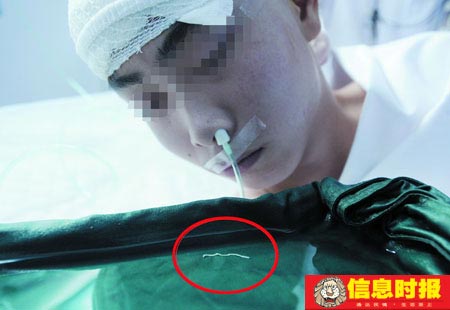 據(jù)小龍的主治醫(yī)生吳杰說(shuō),“醫(yī)院對(duì)小龍兩年來(lái)的影像資料進(jìn)行了比較,發(fā)現(xiàn)病灶的位置居然發(fā)生了兩厘米多長(zhǎng)的移動(dòng)。什么東西能夠在人體內(nèi)‘位移'這么長(zhǎng)距離呢?最大的可能應(yīng)是寄生蟲(chóng)了!敝,醫(yī)生通過(guò)開(kāi)顱手術(shù),果然從小龍的腦袋里“釣”出一條雖斷裂成三段,但主要部分依然活生生的寄生蟲(chóng)——裂頭蚴。據(jù)小龍父親介紹,由于迷信多吃當(dāng)?shù)厣嚼锏囊吧嗤苣軌驈?qiáng)健身體,小龍父親從小龍3歲時(shí)就開(kāi)始為其捕捉青蛙食用,夏季幾乎天天都能吃上一餐,一直到其六歲后方才減少捕食。