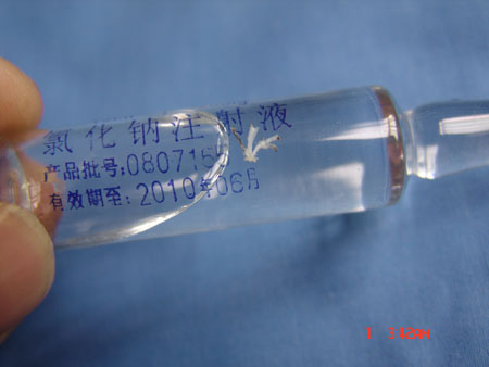 平頂山市新華區(qū)人民醫(yī)院秦大夫向記者介紹說,2008年11月5日,他正在給患者進行特殊治療時,發(fā)現(xiàn)注射用的0.9%氯化鈉注射液內(nèi)有較大異物且肉眼可見,形狀約像一只蚊子(如圖),該藥品批號為0807165,生產(chǎn)廠家是山東省泗水希爾康制藥有限公司。