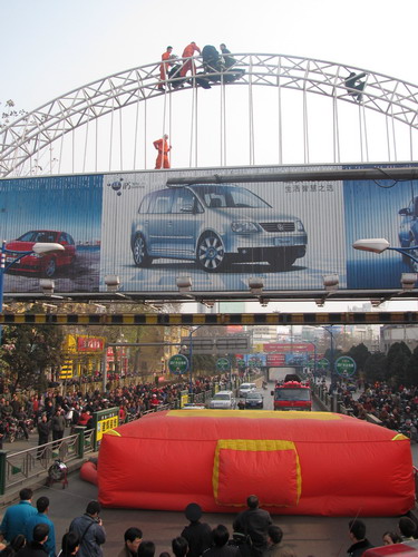 考慮到該男子的人身安全,飯店老板當(dāng)場(chǎng)答應(yīng)拿出100塊錢對(duì)其補(bǔ)償,然而廣告架上的男子突然改變了注意,提出了一個(gè)荒唐的理由,聲稱要市長(zhǎng)到場(chǎng)自己才肯下來。時(shí)間一秒一秒的過去了,僵持還在繼續(xù),所有的勸說都是徒勞,此時(shí)廣告架下邊的的救生氣墊也出現(xiàn)了意外,原來,向氣墊里充氣的充氣機(jī)因長(zhǎng)時(shí)間使用,機(jī)器的油料快用完了,于是現(xiàn)場(chǎng)指揮員立即對(duì)充氣機(jī)進(jìn)行了更換。由于現(xiàn)場(chǎng)圍觀群眾太多,指揮員馬上與大隊(duì)取得了聯(lián)系請(qǐng)求消防二中隊(duì)前來增援。