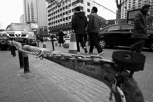 采訪中,不少行人和附近開車人員對銀行門前的鐵鏈頗有微詞!斑@條鏈子扯到這兒幾個月了,可沒少絆人!”一位市民說,這家銀行離醫(yī)院近,白天晚上來取錢的人都比較多,出口扯條鐵鏈,光線暗時根本就看不見。