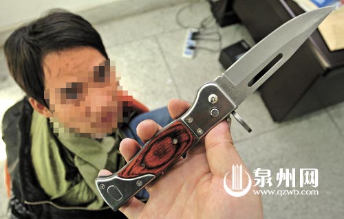 蘭師傅走到窗口前,窗口內(nèi)的小陳指著其中的年輕男子向自己示意,蘭師傅正納悶,突然看到這名男子右手握著一把十多厘米長(zhǎng)的匕首。