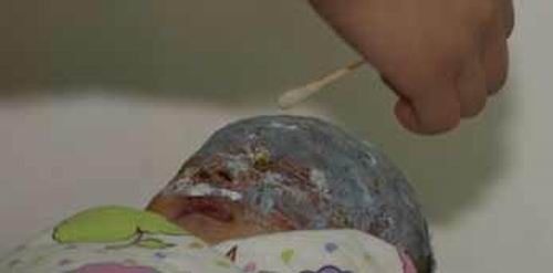 記者昨天(1月3日)在醫(yī)院見到了孩子,醫(yī)生把藥膏從孩子頭頂敷到孩子嘴唇上方,白白的一大片。孩子出現(xiàn)高燒,“醫(yī)生說(shuō)要過(guò)了7天感染期,才能知道孩子傷到啥程度,能不能留下疤痕。”楊丹說(shuō)。