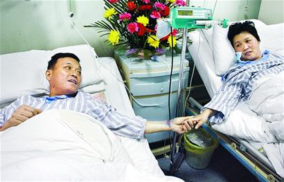 術(shù)后,夫婦倆住在同一病房,他們的病床只隔不到半米,夫妻二人經(jīng)常相互鼓勵,互相溫暖,這讓醫(yī)護人員也深受感動!笆俏依掀沤o了我第二次生命,以后我要好好過日子,好好疼她!睏罴紫部粗眿D,滿含熱淚。