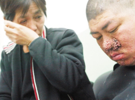 1995年的一天,兒子一覺醒來發(fā)現(xiàn)鼻子上長了一串紅色疙瘩,本以為是上火就擦了些藥膏,但沒想到紅疙瘩反而越長越多,并且一長就是14年。周小宇曾去醫(yī)院看過病,被診斷為血管瘤,但聽說治療費(fèi)至少要幾萬元,小宇趕忙拉著父母“逃”回了家。