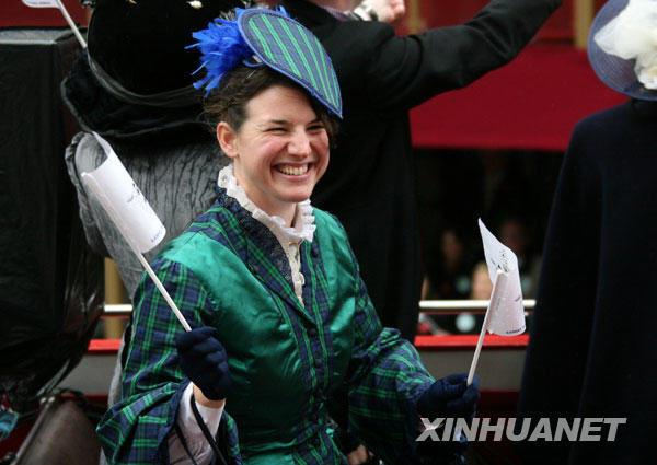 11月8日,在英國首都倫敦,一名著傳統(tǒng)服裝的女子參加新當(dāng)選的金融城市長的就職巡游。新華社記者謝秀棟攝