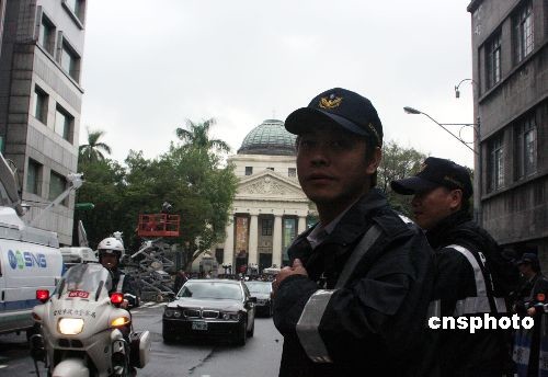 圖為陳水扁進(jìn)入特偵組后,大批警方在現(xiàn)場(chǎng)戒備,而陳水扁的車隊(duì)則由側(cè)門進(jìn)入特偵組。