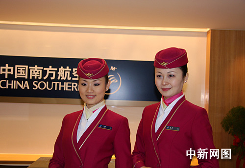 1月15日,大陸南方航空公司在臺(tái)北正式成立辦事處,成為首家在臺(tái)灣掛牌運(yùn)營(yíng)的大陸企業(yè)。圖為開業(yè)揭幕儀式典禮上的南航空姐。中新社記者 陳立宇 攝