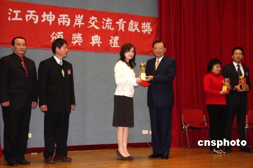 1月15日,海基會董事長江丙坤出席“兩岸經(jīng)貿(mào)合作與交流研討會”,并頒發(fā)“江丙坤兩岸交流貢獻獎”。得主包括臺灣大學環(huán)境工程學研究所教授駱尚廉、夏潮基金會董事長宋東文等人。中新社發(fā) 陳立宇 攝