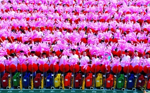 今年國慶廣場背景翻花表演中,有近900名學(xué)生來自北京四中。在這些演出主力軍中,還穿插著23名替補隊員。他們將為信號盲區(qū)傳遞信號,同時頂替臨時缺席的學(xué)生。據(jù)了解,每個替補隊員要負(fù)責(zé)所轄區(qū)域內(nèi)的100人的情況。事實上,這些被稱作替補隊員的學(xué)生必須熟悉轄區(qū)內(nèi)每個隊員的翻花動作,承擔(dān)著“精英隊員”的任務(wù)。