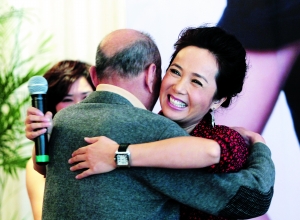 蔣雯麗本月雙喜臨門,剛憑借《立春》獲得金雞影后,其導(dǎo)演處女作《我們天上見》又在韓國釜山電影節(jié)上榮膺“最受觀眾喜愛電影大獎(jiǎng)”。雙獎(jiǎng)在手的蔣雯麗昨日偕《我們天上見》的主演朱旭等在京慶功,可惜慶功宴上丈夫顧長衛(wèi)姍姍來遲,活動(dòng)已經(jīng)結(jié)束了才出現(xiàn),連話都沒來得及說上一句。