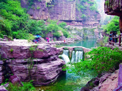 8億年前,云臺山還是汪洋一片,氣候和現(xiàn)在的東南亞一樣。今天的云臺山已經(jīng)變成了氣勢磅礴的地質(zhì)公園。有意思的是,云臺山不僅有各種各樣的巖石山,還有泉、瀑、潭。稍有平坦之地,便有各種果樹,可以隨手摘棗子、山葡萄、柿子、石榴……