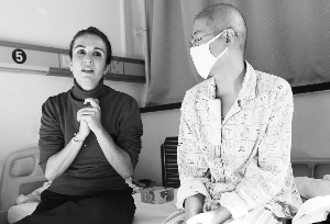 “他是我第一個(gè)中國(guó)朋友!弊蛉障挛,307醫(yī)院的骨髓病房,吳麗雅和劉江濤坐在病床邊,說(shuō)起他們相識(shí)的經(jīng)歷。