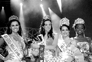 9日,在菲律賓北部邦板牙省的天使城,地球小姐決賽落下帷幕。獲得前四名的是巴西小姐塔蒂婭內(nèi)·阿爾維斯、墨西哥小姐阿維蓋爾·埃利薩爾德、菲律賓小姐卡拉·亨利和坦桑尼亞小姐馬里亞姆·奧德姆巴(左起)。其中,菲律賓小姐卡拉·亨利獲得冠軍。