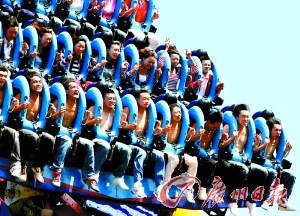 11時11分11秒,其余10位“脫光”失敗的勇士慘了,他們一同坐到了過山車的第一排,而且都光著膀子!隨著呼嘯的風聲,10名未能“脫光”的勇士們被“明明”們扔到了寒風中……