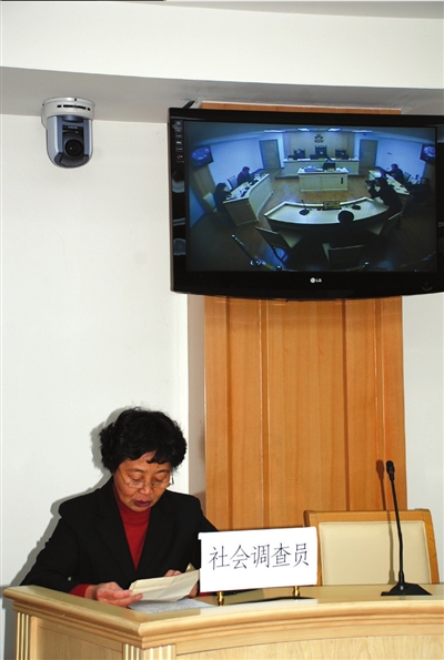 社會(huì)調(diào)查員上庭宣讀調(diào)查報(bào)告。 李力攝