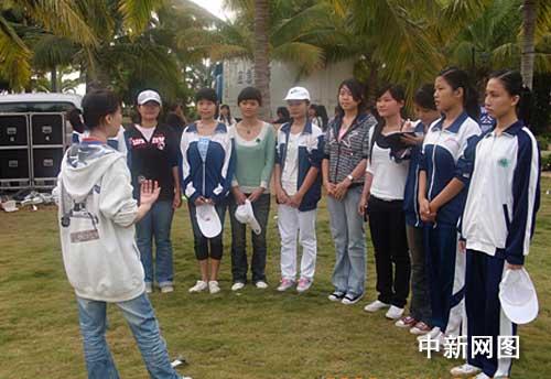 (海南外國語學院的志愿者一早趕到彩排現(xiàn)場,集中精力聽從歡樂節(jié)導(dǎo)演指示)