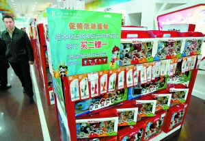奧運(yùn)徽章買(mǎi)一送一,毛絨福娃買(mǎi)二送一,或者干脆打個(gè)68折……日前多家北京奧運(yùn)會(huì)特許商品專(zhuān)賣(mài)店或柜臺(tái)里的奧運(yùn)特許商品已經(jīng)紛紛降價(jià)清倉(cāng)“甩貨”。據(jù)悉,整個(gè)“清倉(cāng)期”將持續(xù)到明年3月底。