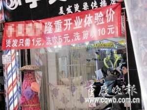 近日,渝北龍溪街道電子校附近一家新開的理發(fā)店打出廣告,到該店燙發(fā)只需1元。如此“好事”,是真的嗎?