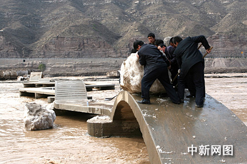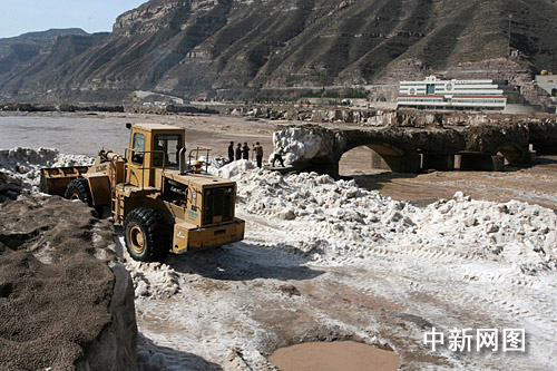 為早日使景區(qū)開放,在一年一度桃花訊來臨后,河道的冰塊被洪水沖刷的所剩無幾,加之天氣漸漸變暖,使景區(qū)道路冰塊融化,壺口管委會(huì)決定采取機(jī)械與人工清理冰塊的辦法,及時(shí)組織景區(qū)干部職工和景區(qū)群眾配合機(jī)械對(duì)冰塊進(jìn)行清理。