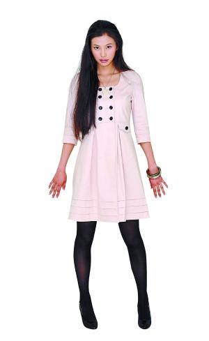 珍珠粉是今年的流行色,非常適合春天這個(gè)季節(jié),這件衣服的面料比較厚,又適合在有點(diǎn)涼的時(shí)候穿。這個(gè)款式簡(jiǎn)單又甜美,非常適合OL和具有可愛氣質(zhì)的女性穿著。發(fā)型最好搭配比較自然的披肩發(fā)。